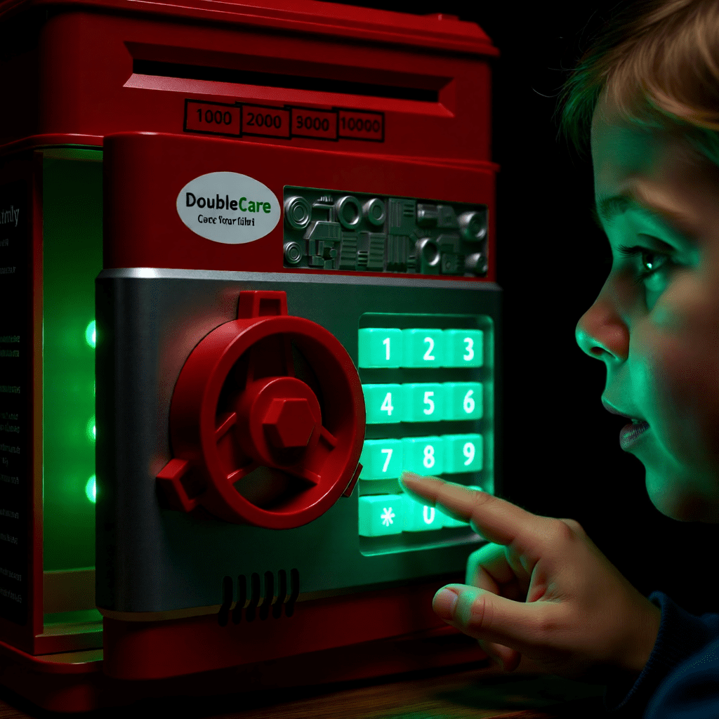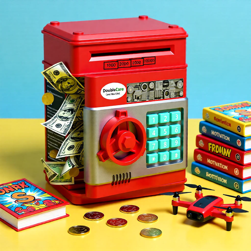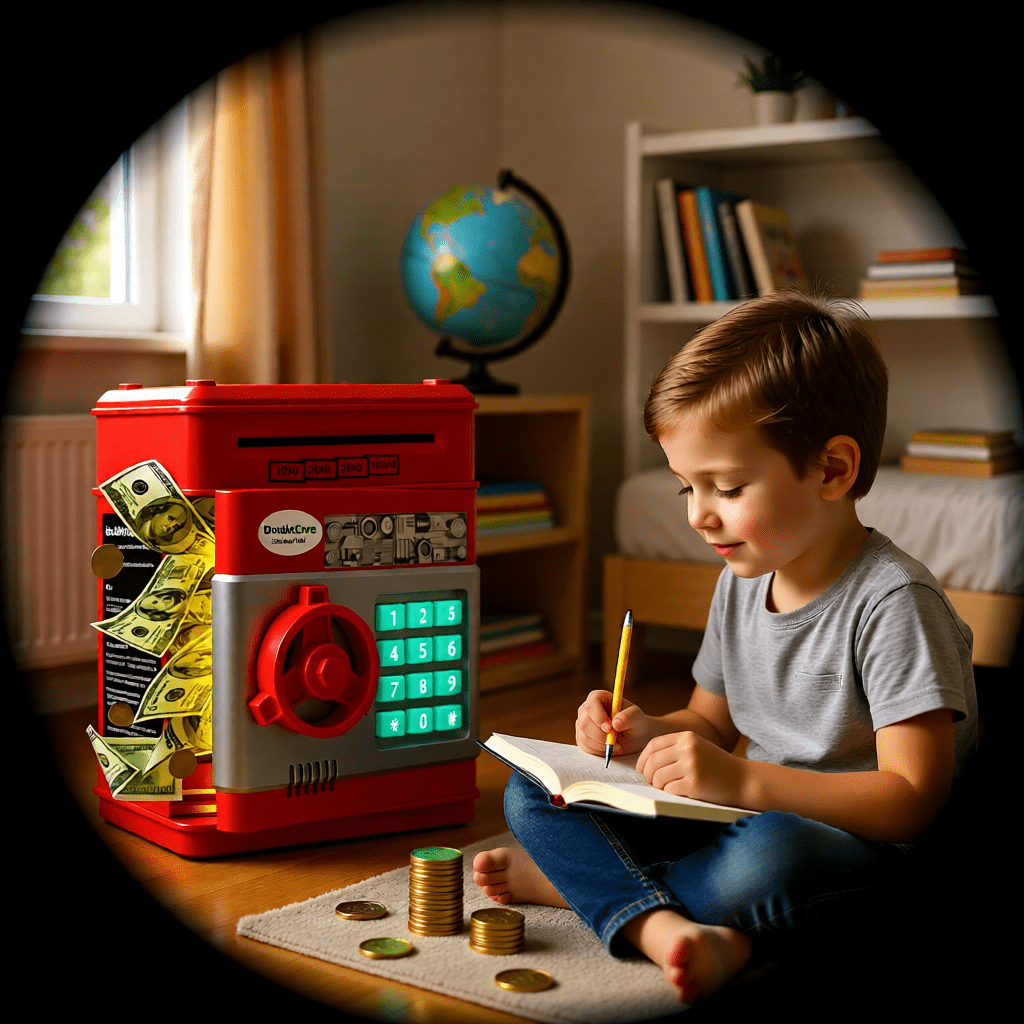 🔐 مقبض فتح للخزنة: بيوفّر إحساس “خزنة حقيقية” ويشجّع الطفل يدّخر أكتر.
